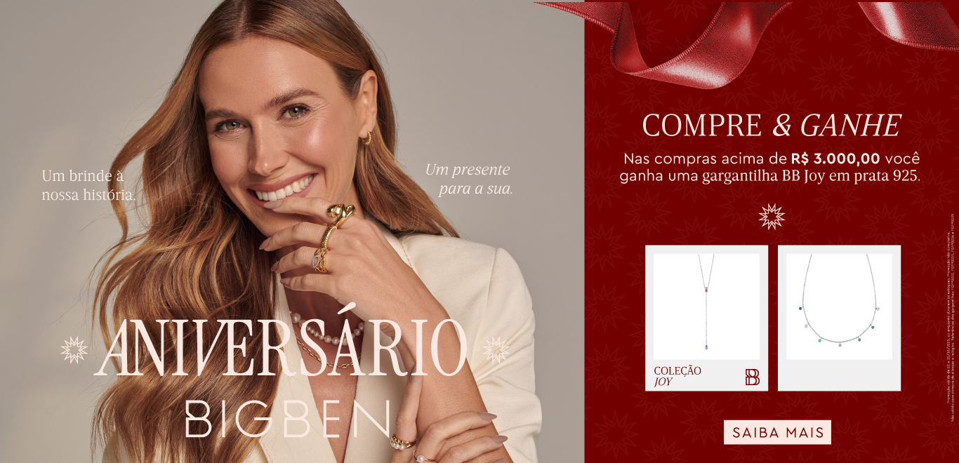 Hoje e sempre, a Bigben não quer ficar só na vitrine ou no seu porta-joias. Ela faz questão de fazer parte da sua vida e inspirar você a conquistar tudo o que quiser.